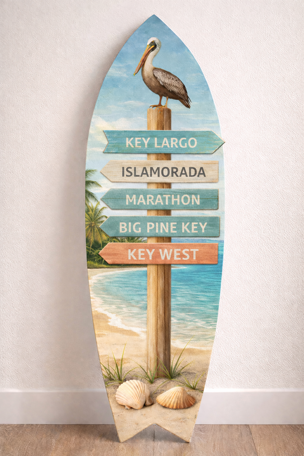 Florida Keys Surfboard Sign – Key Largo, Islamorada, Marathon, Big Pine Key & Key West | Coastal Beach House Decor