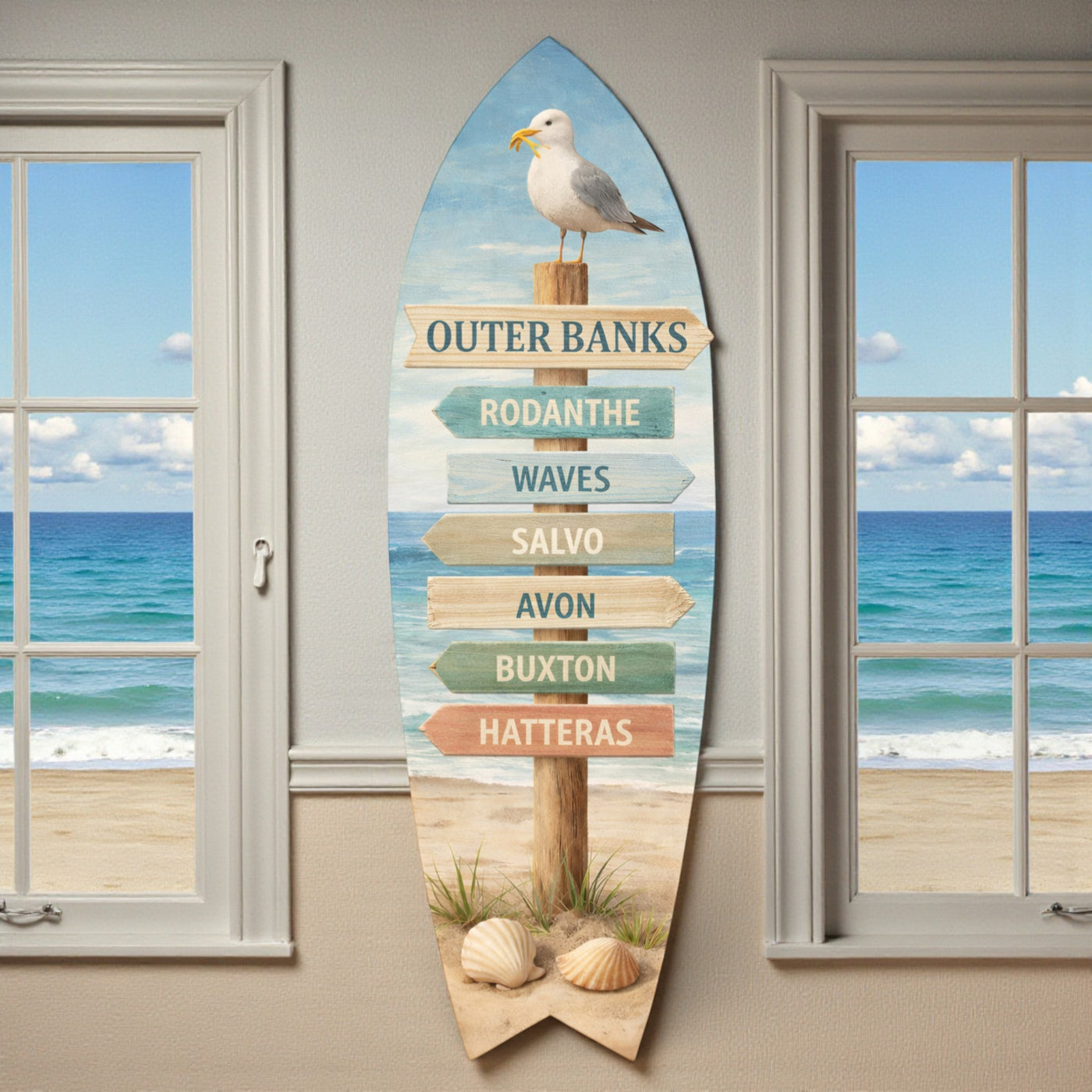 The Outerbanks Surfboard combines functional design with regional character, featuring detailed graphics celebrating iconic OBX towns. Crafted from durable PVC...