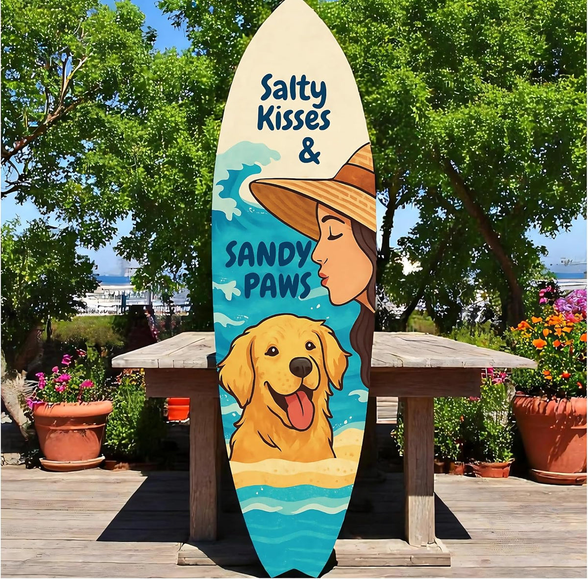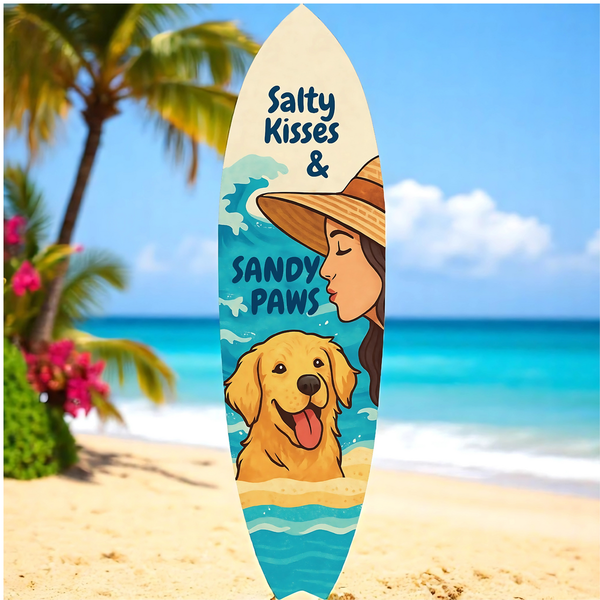 Perfect for Dog Lovers & Beachgoers: Celebrate sandy paws and salty air with this beachy decorative surfboard sign-ideal for dog owners who love long walks by the water with their pup.
