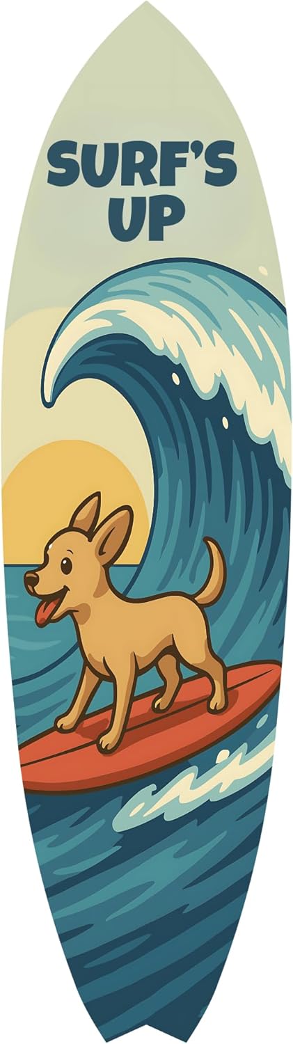 Outdoor Dog Surfboard Wall Decor – Coastal Pet Wall Art, PVC Beach House Decor for Dog Owners, Surfs Up, 3 - 5 Feet
