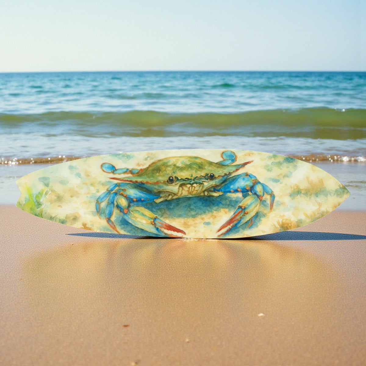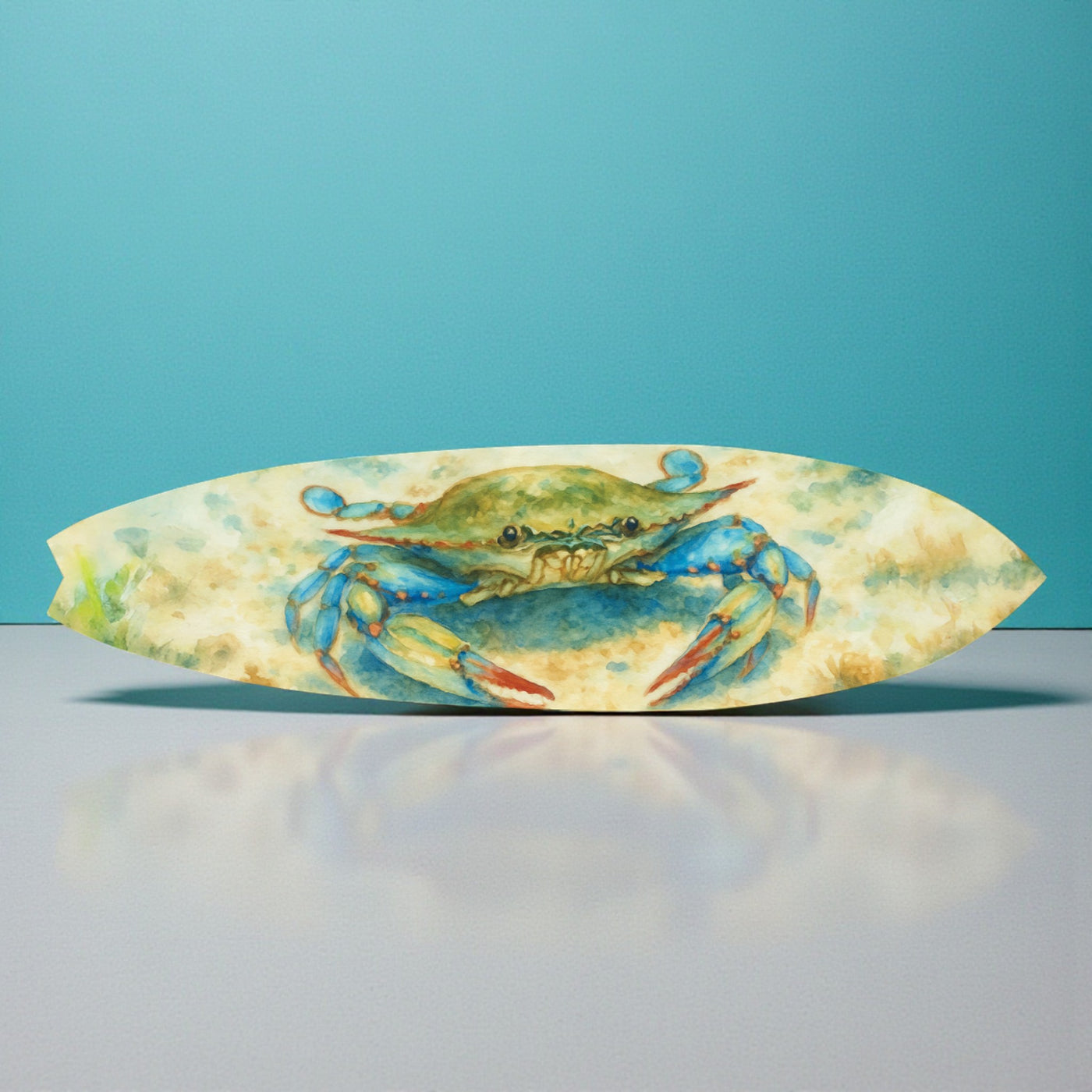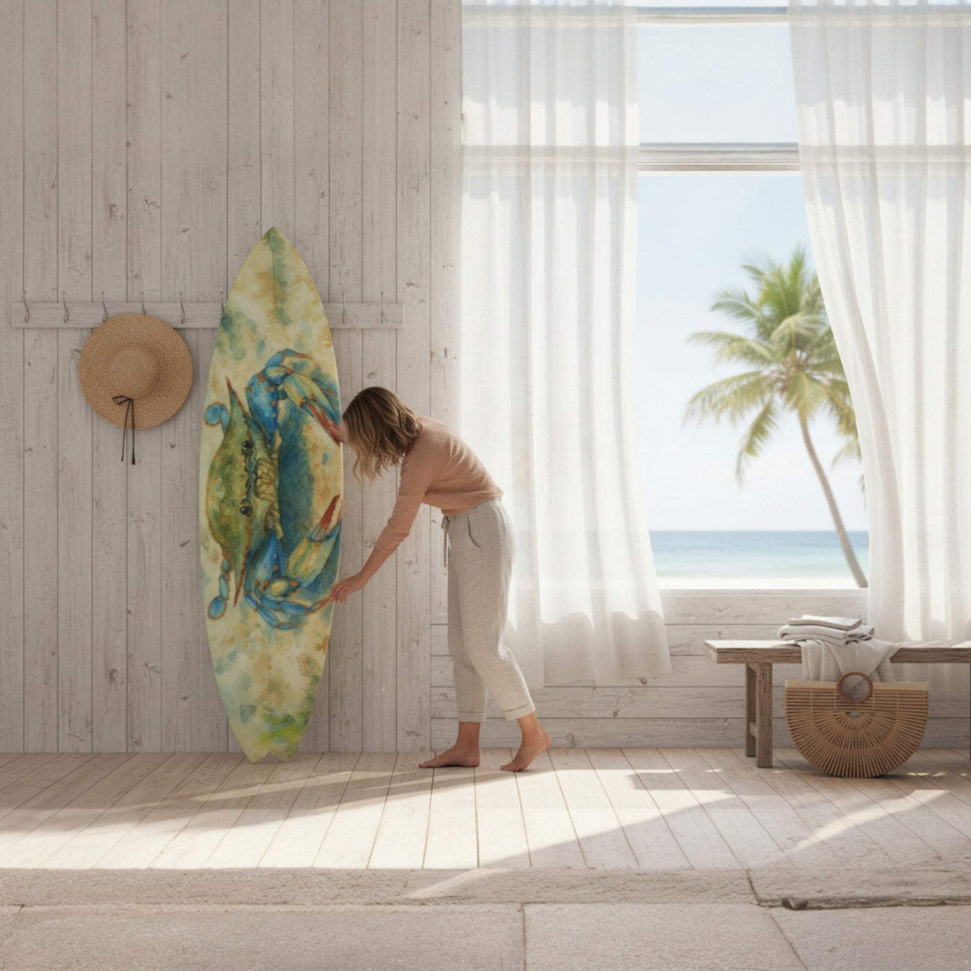Display this exquisite crab watercolor surfboard as a striking piece of wall art. Featuring delicate watercolor illustrations of crabs rendered...