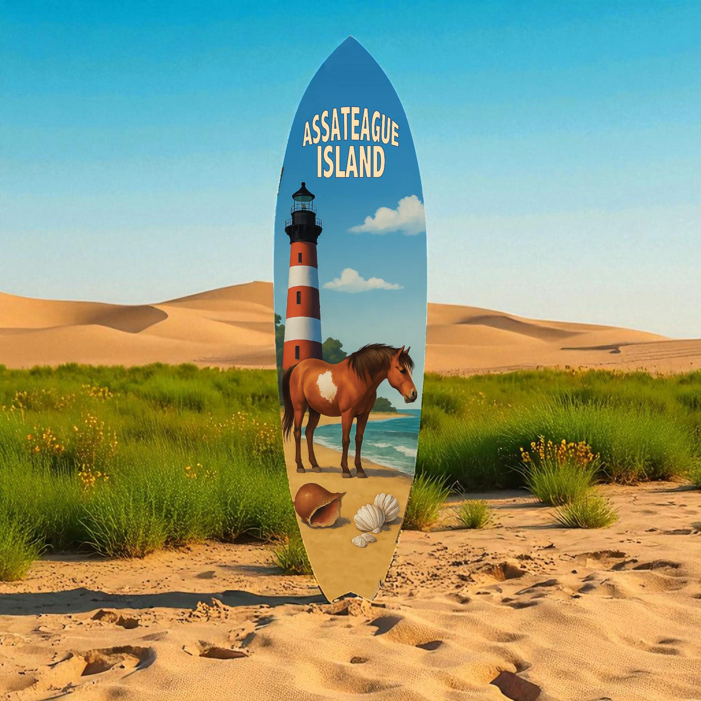 Assateague Island Surfboard Decor – Coastal Wall Art for Beach Lovers, Indoor Outdoor PVC Surf Board Sign, 3 - 5 Feet