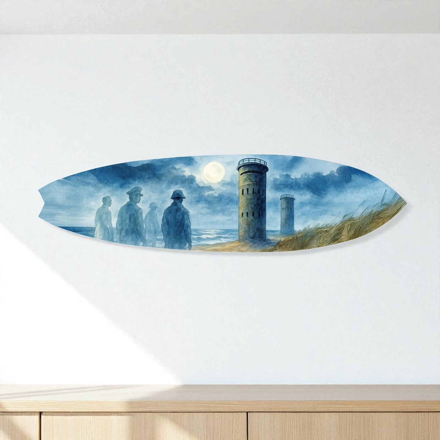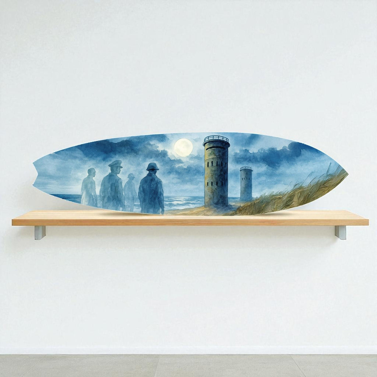 Haunted Cape Henlopen Tower Ghost Surfboard | Delaware WWII Towers Art | Spooky Coastal Wall Decor | Rehoboth, Lewes Beach Gift