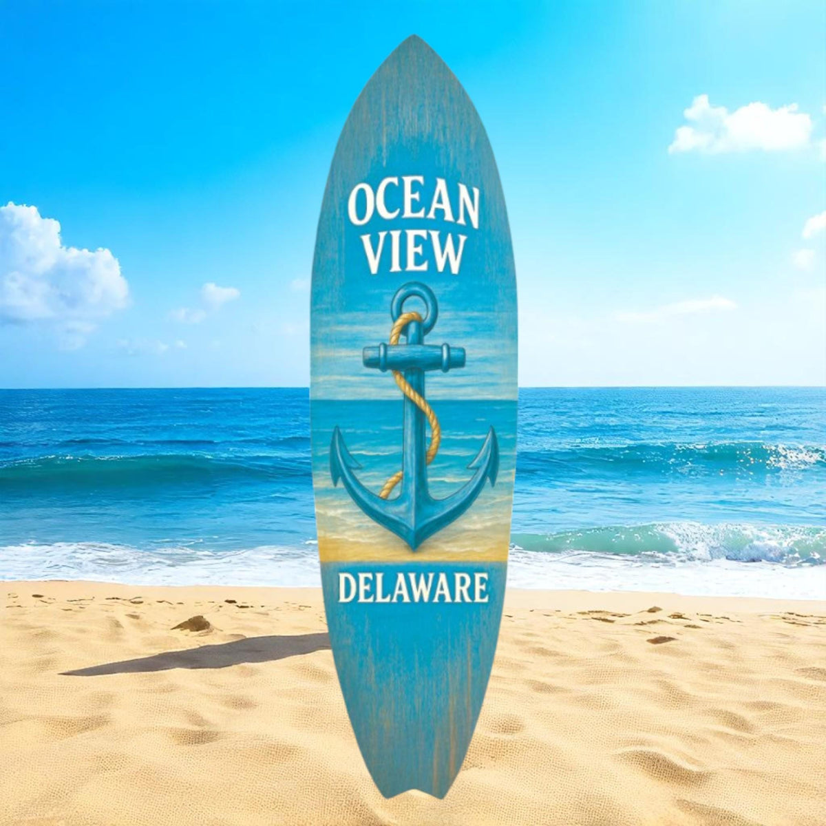 Ocean View Delaware Surfboard Wall Art - Coastal Nautical Decor