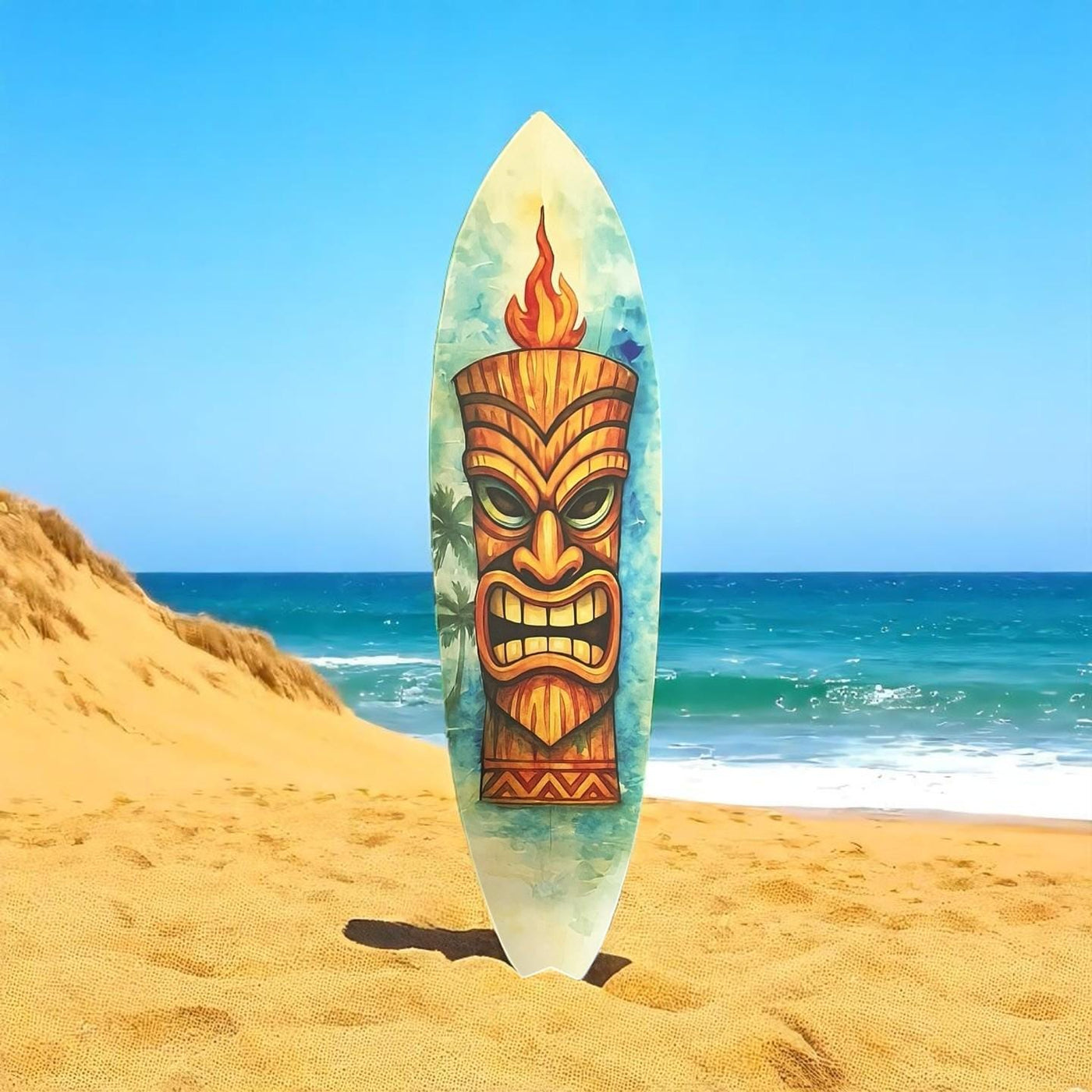 Tiki Surfboard Wall Art - Bold Polynesian Tropical Decor Add bold island vibes to your space with this eye-catching Tiki...